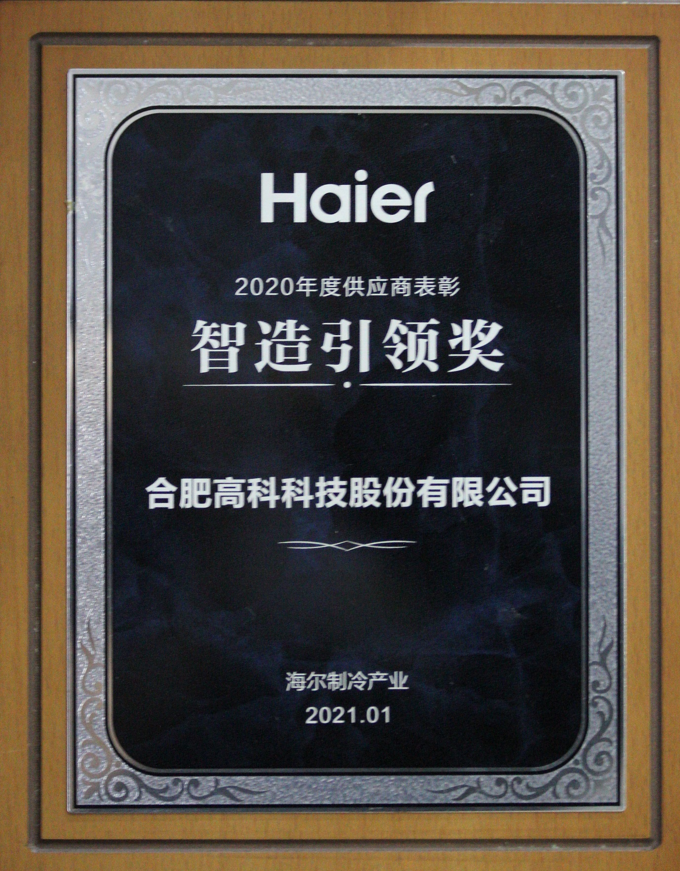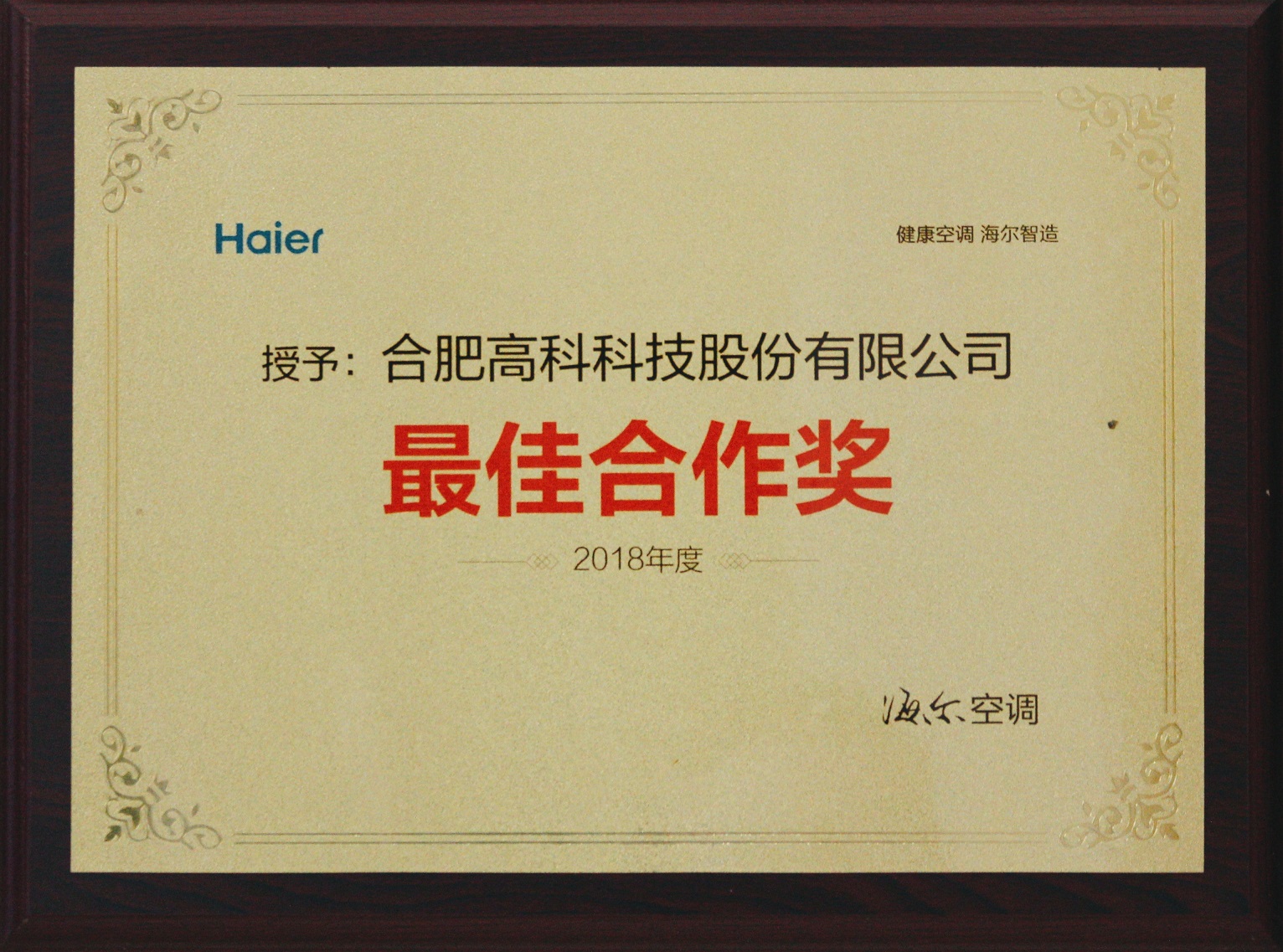 海爾合肥園區最佳合作伙伴獎