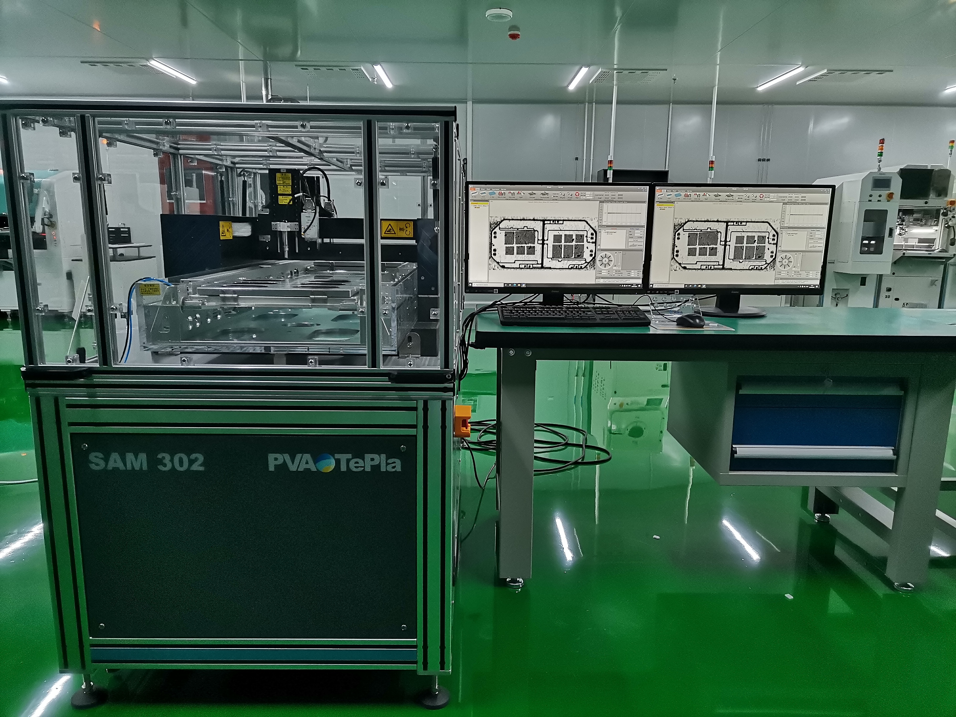 檢測半導體器件及IGBT功率模塊內部焊接缺陷,計算空洞率,治具為防水密封盒自動出入水裝置,掃描效率高。