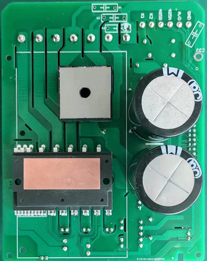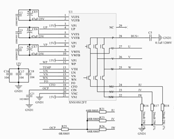 IGBT單管的裝配方式、絕緣要求處理、散熱方式等問題為都比較難處理的,我們提供一種集成電源+功率模組的應用方案,體積小,功能齊全的應用方案。該方案集成IPM、整流橋、母線電壓采樣電路、相電壓采樣電路、電流采樣、預充電路、繼電器輸出、電源電路。